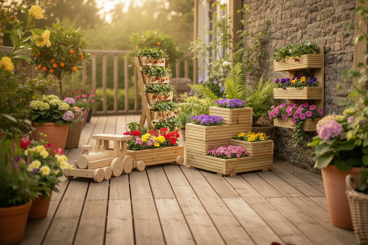 Handcrafted wooden garden planters for every outdoor space — from tiered wall...