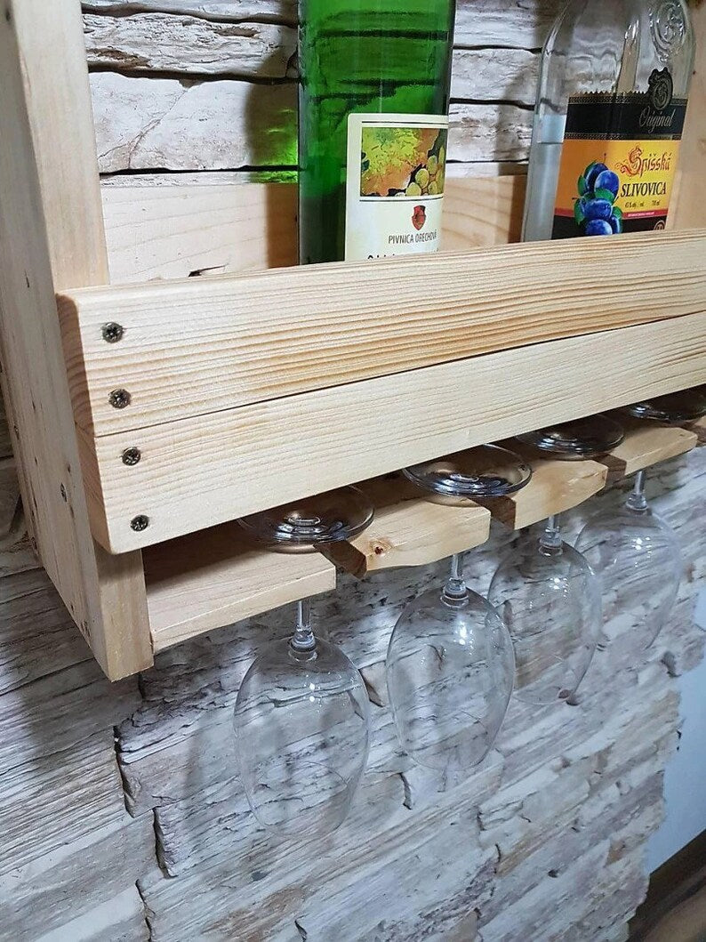 Decorations, bottles and glasses not included with the products. Each product will be unique to itself, because I build each product separately some wood may have knots, holes after the nails or different grain patterns in different positions on each piece of wood, the dimensions and the process of producing product will be the same, making each product the same with the exception of the wood grain and knots.