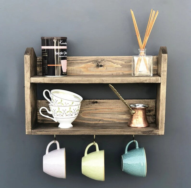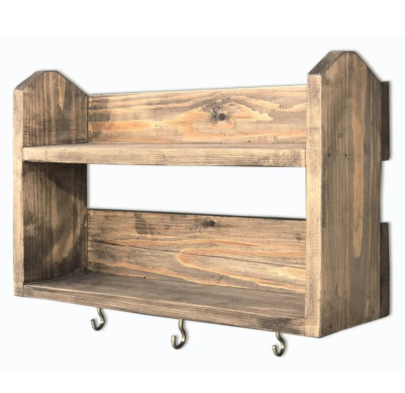Wall mounted storage shelf unit made from reclaimed solid wood creates a perfect storage solution in any room. Handmade from reclaimed pallet wood, hand sanded, glued and screwed together, stained and waxed to get perfect rustic look.