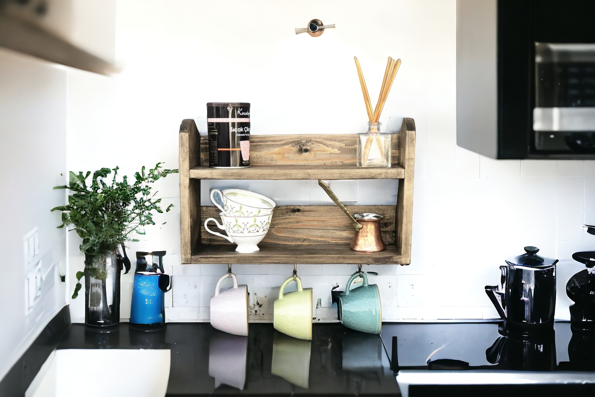Reclaimed wood rustic shelf storage unit, Kitchen storage