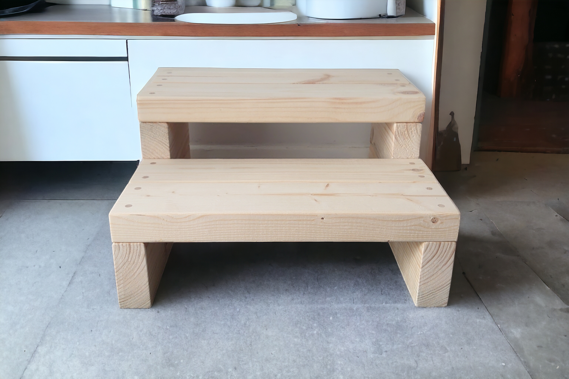 This small step stool is an ideal hop up in a kitchen, bathroom etc....Great for kids too!