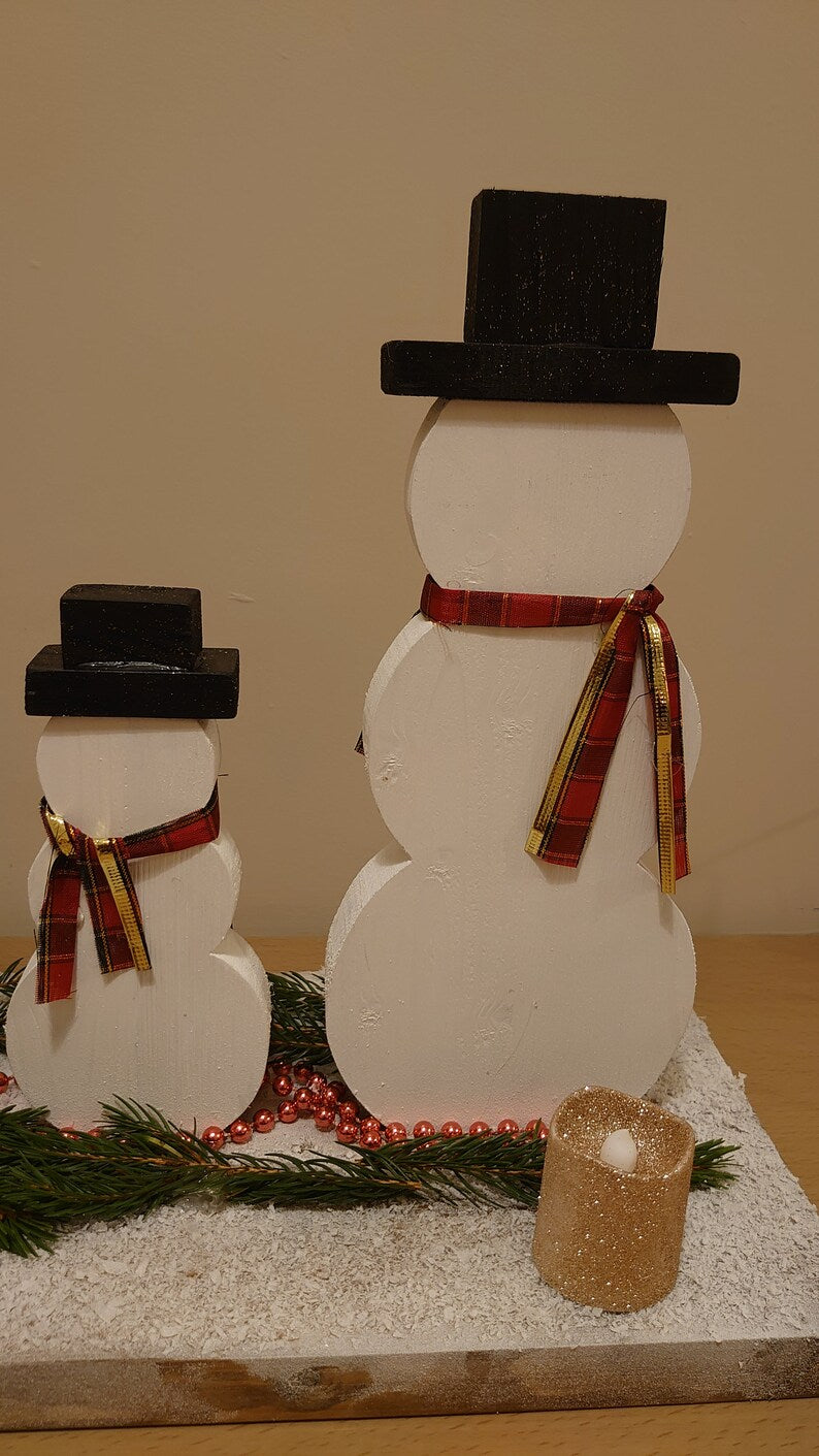 Wooden Snowmen Table Decoration Christmas, Wooden tray decoration, Christmas table centrepiece